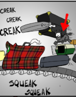 The Little Dog showed up back in December of 2017 in Pesky Gremlins Comic 286. At that time, he escaped from his doggie cage while under the tender mercies of Nickle and Dime Airline’s baggage handling system.