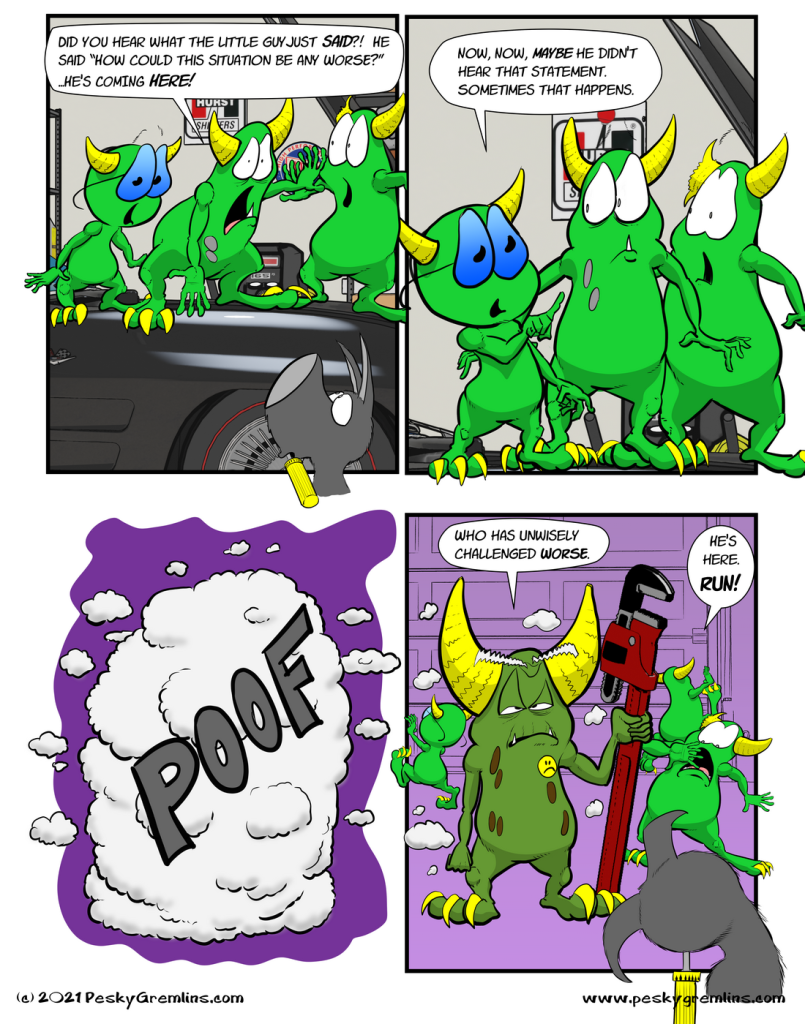 Yes, Worse is the gremlin that answers the question “How could this be worse?” …and he travels with his onw monkey wrench, too.