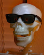The lack of a full fledged nose and a complete lack of ears makes it almost impossible for a plastic glow-in-the-dark skeleton to wear sun glasses. With no natural resting place, an adhesive must be introduced to keep said sun glasses properly located. Duct tape is man’s ultimate solution to sticky problems like this.